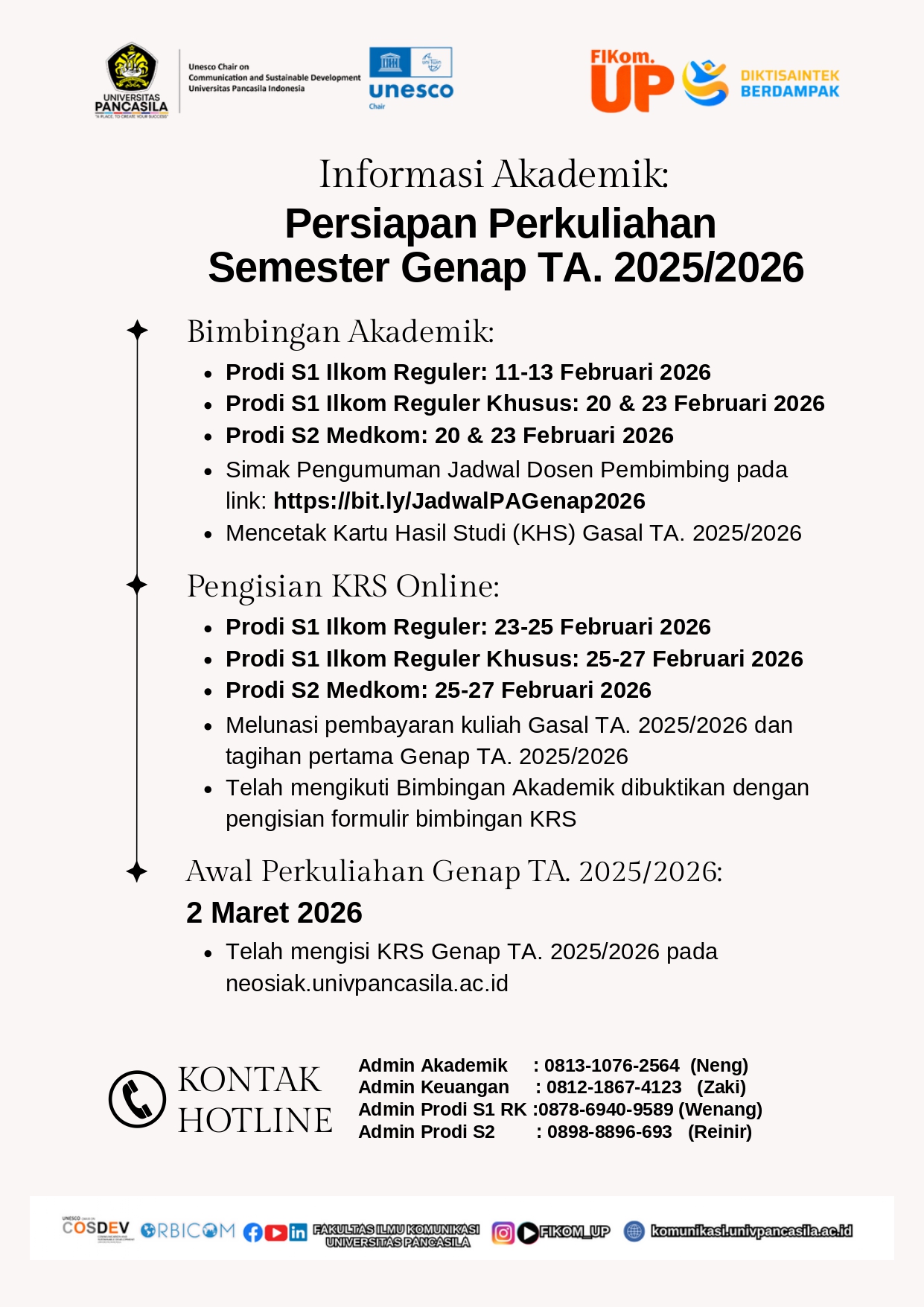 Previous slide Next slide Fakultas Ilmu Komunikasi Universitas Pancasila (FIKOM UP) bersama Badan Riset dan Inovasi Nasional (BRIN) menyelenggarakan Bedah Buku “Membangun Relasi dalam Komunikasi
