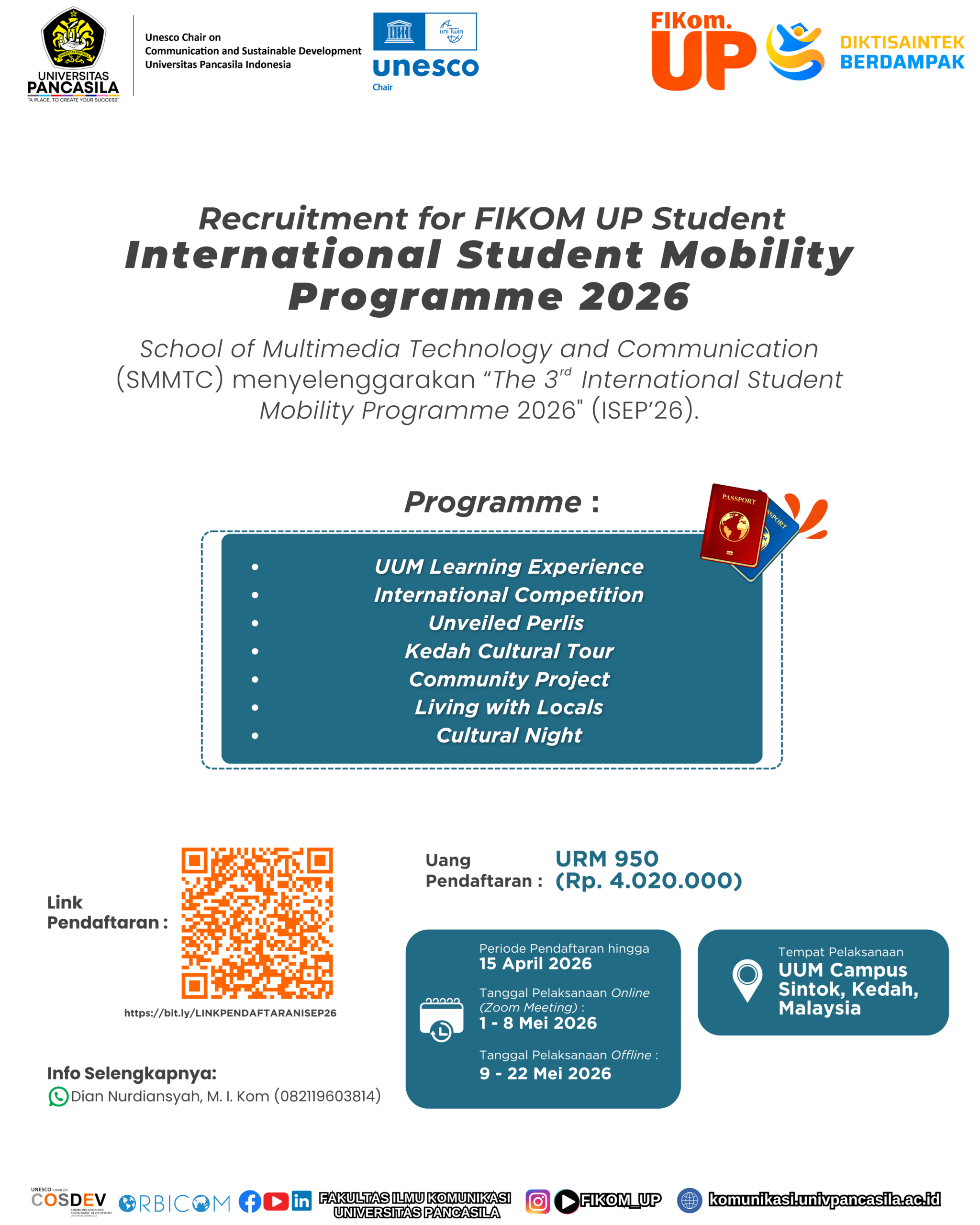 ✨️Recruitment for FIKOM UP Student✨️School of Multimedia Technology and Communication (SMMTC) @uumofficial menyelenggarakan “International Student Mobility Programme 2026″ (ISEP’26) yang akan dilaksanakan pada tanggal 1-22