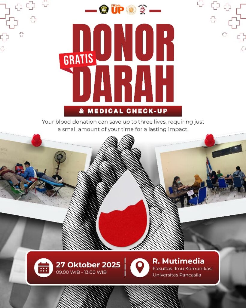 Kegiatan ini menjadi wujud nyata kepedulian kita dalam membantu sesama sekaligus menumbuhkan empati dan solidaritas di tengah masyarakat. 💉 Program kerja kolaborasi SEMA FIKOM–KMUP bersama Palang Merah Indonesia siap digelar kembali! 🩸 🗓 : Senin, 27 Oktober 2025⏰ : 09.00 WIB – 13.00 WIB📍 : Ruang Multimedia Fakultas Ilmu Komunikasi Universitas Pancasila Lt.2 𝗟𝗶𝗻𝗸 𝗣𝗲𝗻𝗱𝗮𝗳𝘁𝗮𝗿𝗮𝗻👇🏻https://forms.gle/6wowdEPjjkE1TYhM7 Selain berbuat baik, […]