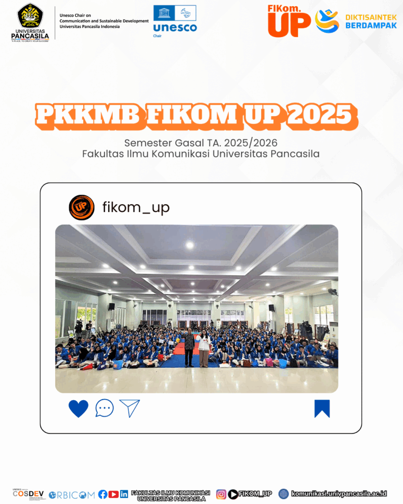 Previous slide Next slide Fakultas Ilmu Komunikasi Universitas Pancasila resmi menyelenggarakan Pengenalan Kehidupan Kampus Mahasiswa Baru (PKKMB) Tahun Akademik 2025/2026. Kegiatan ini berlangsung secara offline pada 16–17 September 2025 di Aula Masjid At-Taqwa, Universitas Pancasila. PKKMB FIKOM UP 2025 hadir dengan tema “Communicating the Future: Innovation, Collaboration, and Impact” sebagai sarana pengenalan bagi mahasiswa baru […]