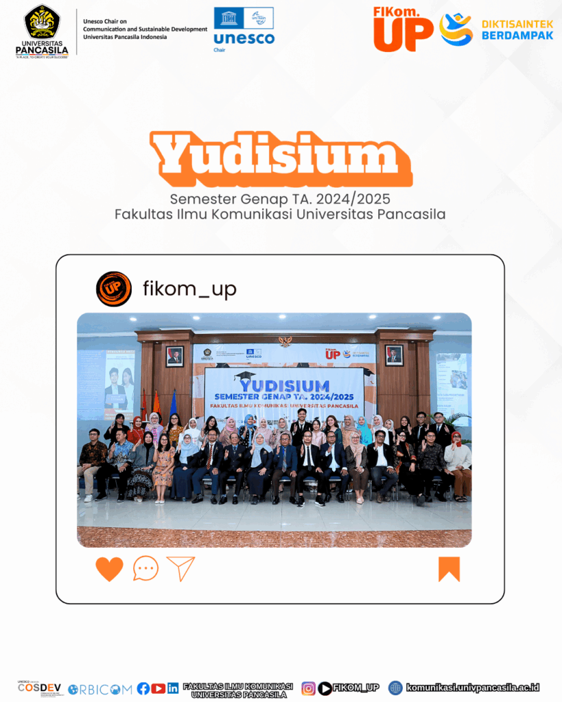 Previous slide Next slide Fakultas Ilmu Komunikasi Universitas Pancasila (FIKOM UP) menggelar Yudisium Semester Genap Tahun Akademik 2024/2025 pada Senin (1/9/2025) bertempat di Aula Masjid At-Taqwa Universitas Pancasila. Sebanyak 198 mahasiswa resmi menyandang gelar Sarjana Ilmu Komunikasi (S.I.Kom) dalam prosesi tersebut. Yudisium ini menjadi langkah awal bagi para lulusan untuk menghadapi persaingan di dunia kerja, […]