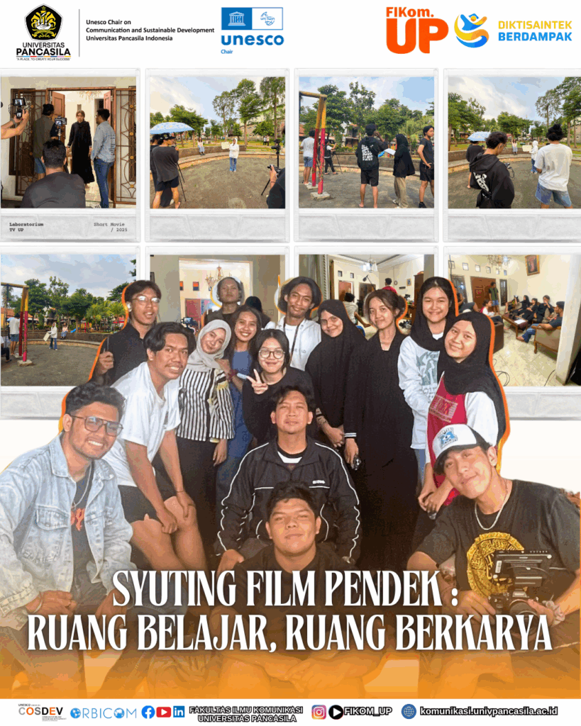 Previous slide Next slide Laboratorium TV Fakultas Ilmu Komunikasi Universitas Pancasila kembali menggelar kegiatan produksi film pendek sebagai wadah pengembangan kreativitas mahasiswa. Melalui proses ini, mahasiswa tidak hanya berlatih teknis produksi, tetapi juga belajar menuangkan ide menjadi karya visual yang inspiratif dan bermakna🎥🎬